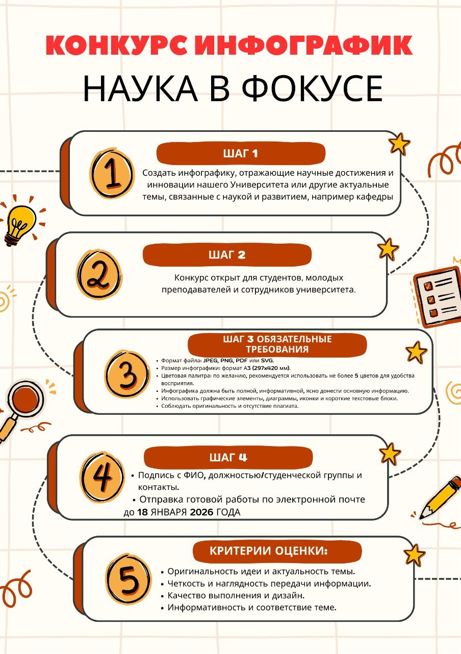 Покажите свои знания, креативность и умение визуально донести важную информацию о научных достижениях и инновациях нашего университета!