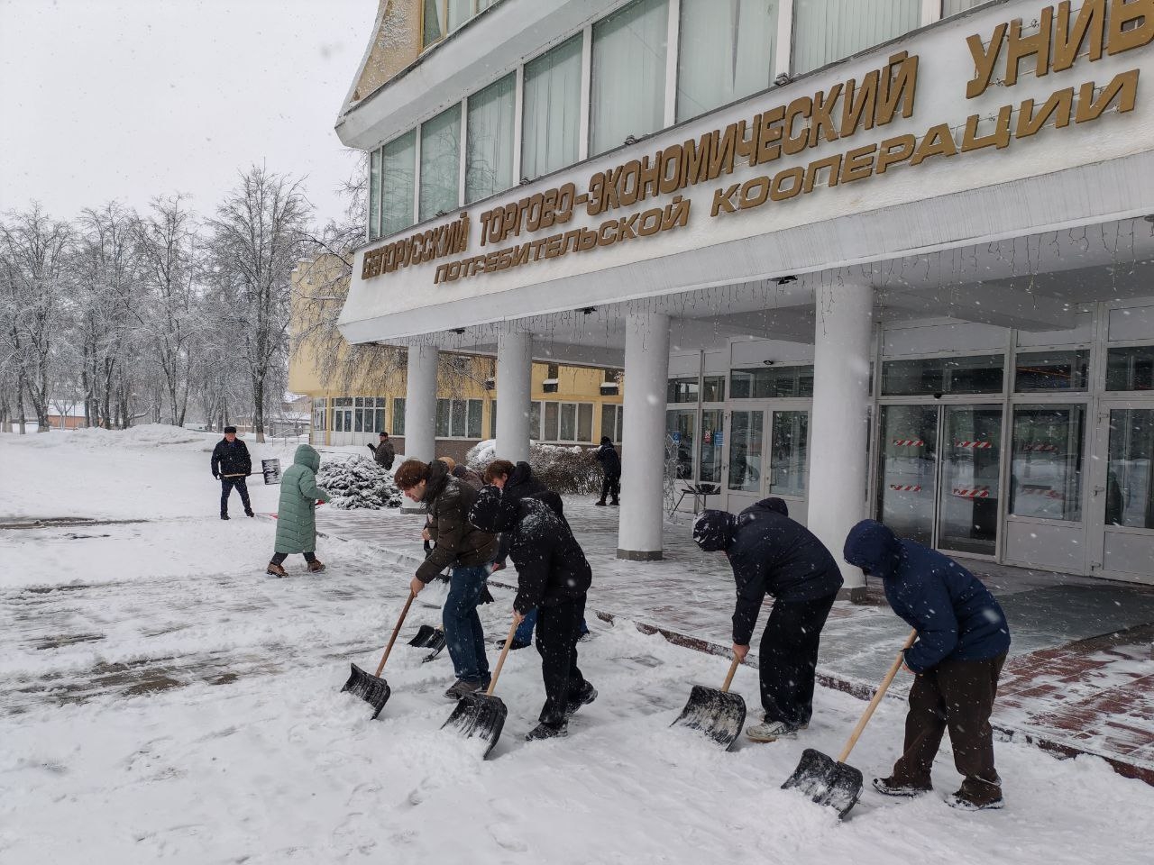 Сегодня, несмотря на продолжающийся снегопад, уборка территорий в районе университета возобновилась с новой силой. К совместным усилиям присоединились и активисты ОО «Белорусский союза женщин» и РОО «Белая Русь». Все вместе они обеспечили расчистку тротуаров, подъездных путей и входных зон учебного корпуса, тем самым сохранив безопасность и комфорт для всех, кто приходит в университет. Благодарим всех участников за сплочённость, гражданскую ответственность и готовность действовать ради общего блага!